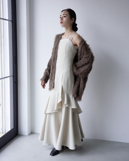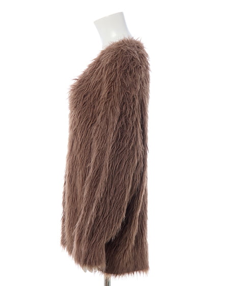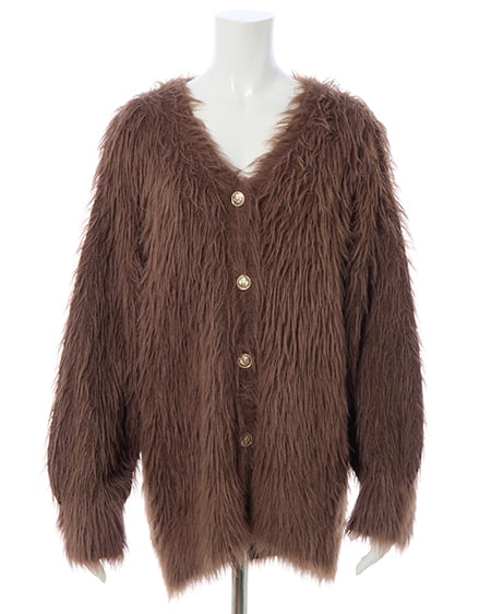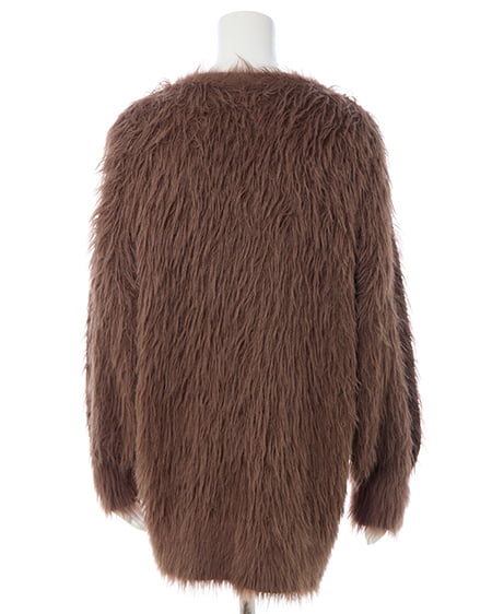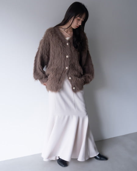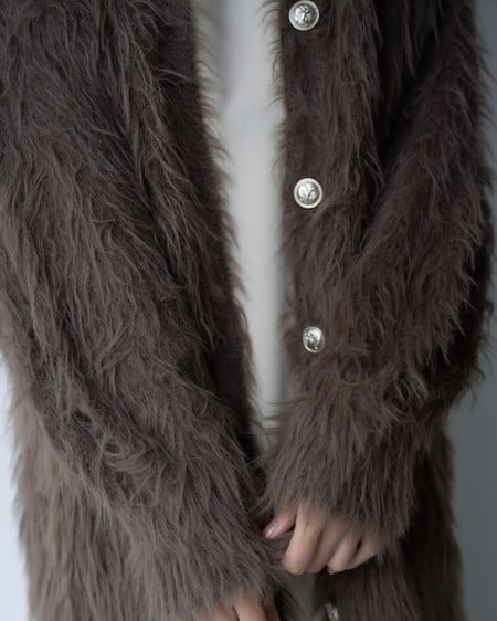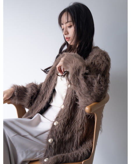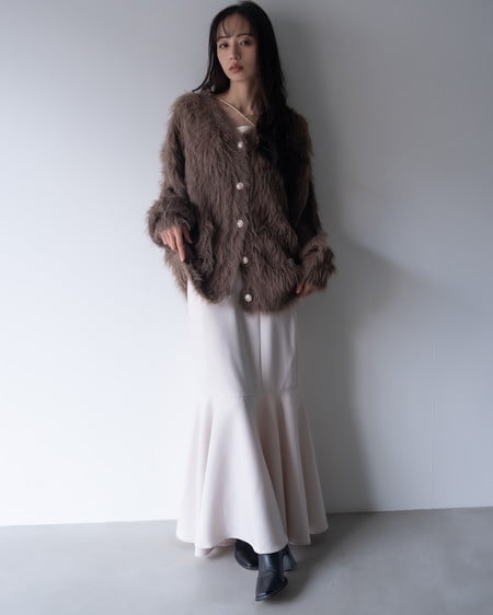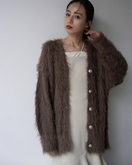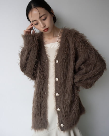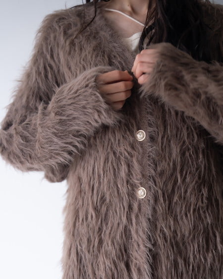 毛足の長いフェザーニットがインパクト抜群のロング丈カーディガンです。
