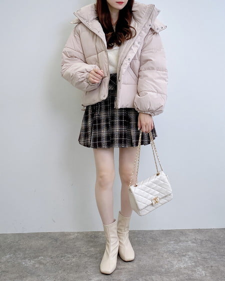 ミニ丈×ロングブーツ合わせで冬らしいガーリーコーデも、