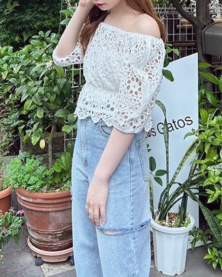 レース編みペプラムトップス