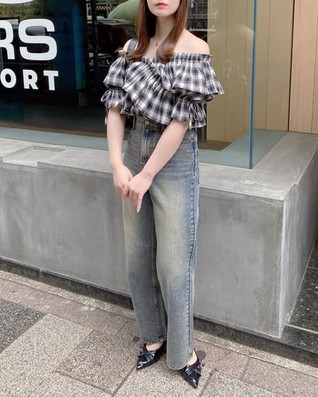 デニムと合わせてヘルシーな肌見せコーデにするのもおすすめ。