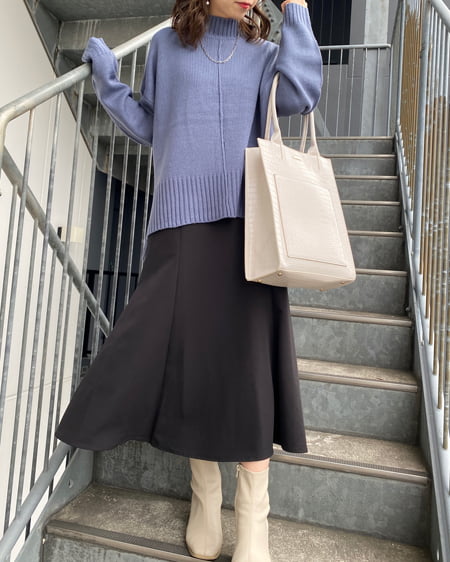 モックネックサイドスリットチュニックニット
