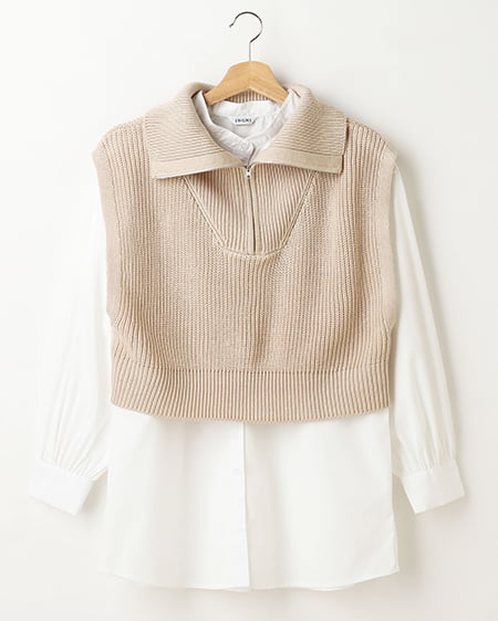 ZIPニットベスト+バンドカラーシャツ/SET