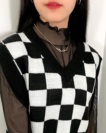 チェッカー柄ニットベスト