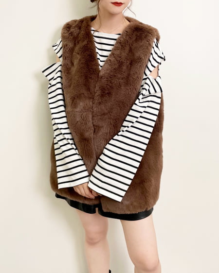 ショルダースリットボーダーロングTシャツ