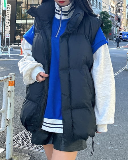 ハーフZIP配色ラインベストドッキングプルオーバー