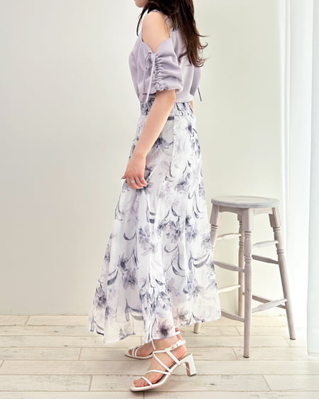 花柄オーガンジースカート