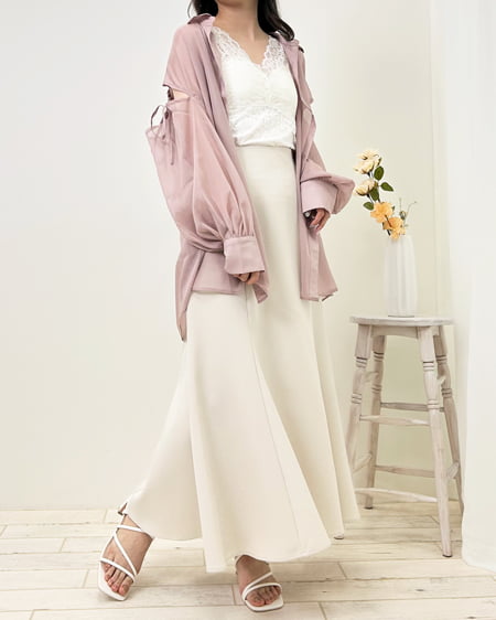 【ラメ入り】肩スリットリボンラメシアーシャツ