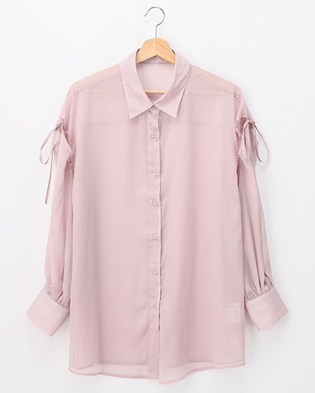 肩スリットリボンラメシアーシャツ