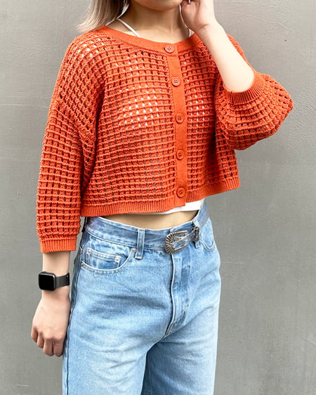 2WAYショート丈/メッシュニット7分袖カーディガン