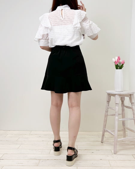 袖フリルシアーチェック/ブラウス