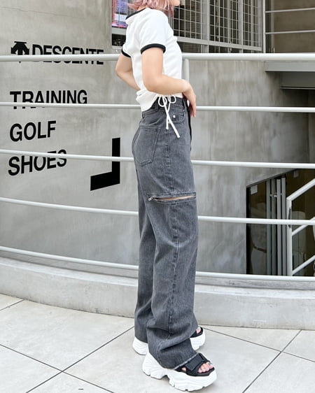 サイドファスナーデニムパンツ
