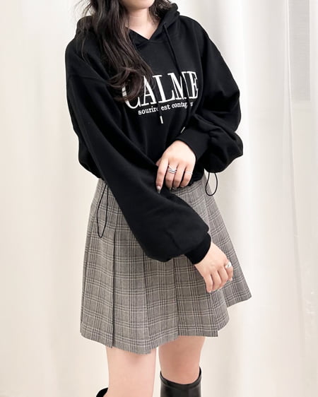 裾ドロストふくれ刺しゅうロゴショートパーカー