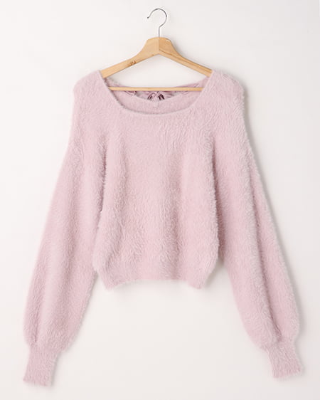 Backリボンフェザーヤーンニット
