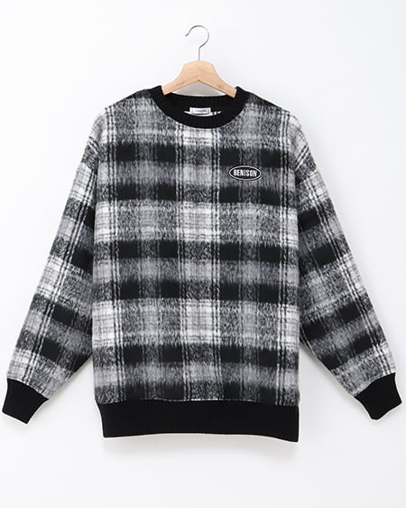 胸刺しゅうロゴチェックリブチュニットップス