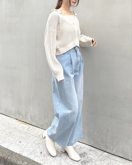 【セットアイテム】メッシュカーディガン+肩リボンキャミSET