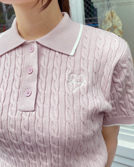 胸刺しゅう半袖ポロニット