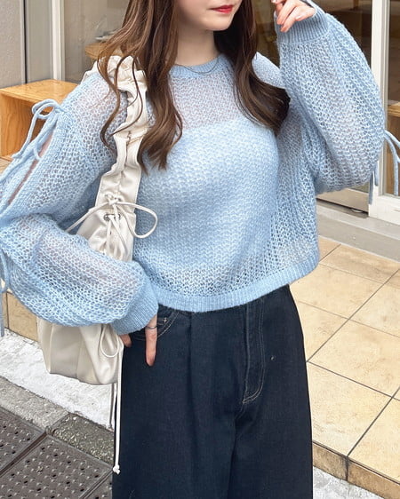 ショルダースリットリボンモヘアニット