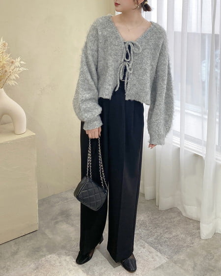 フロントリボンブークレーニットカーディガン