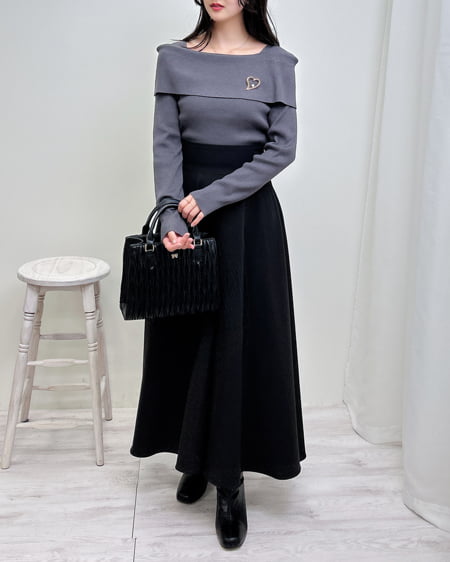 【WEB限定】ブローチ付オフショルニット/A