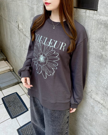 花刺しゅうクルーネックスウェットプルオーバー