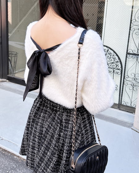 配色Backリボンフェザーニット