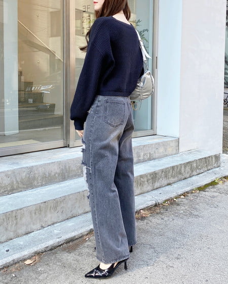 クラッシュデニムワイドパンツ