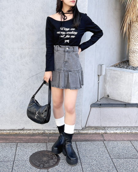 裾切替プリーツデニムミニスカート/A
