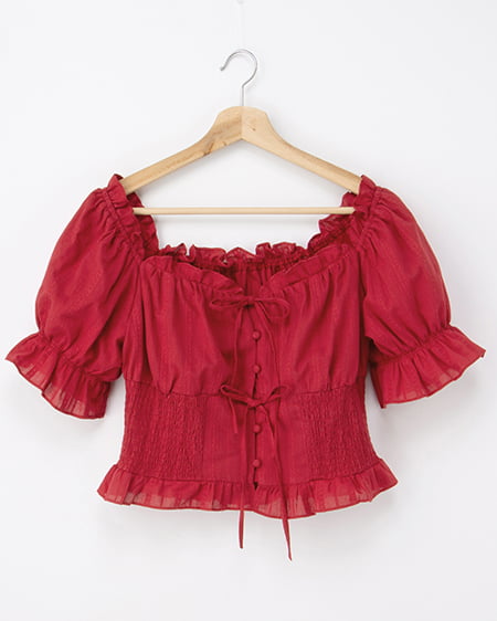 コットンレースリボンシャーリングブラウス(OUTLET)