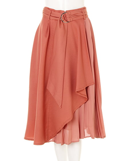 Dカンサッシュ/プリーツ切替フレアミディスカート