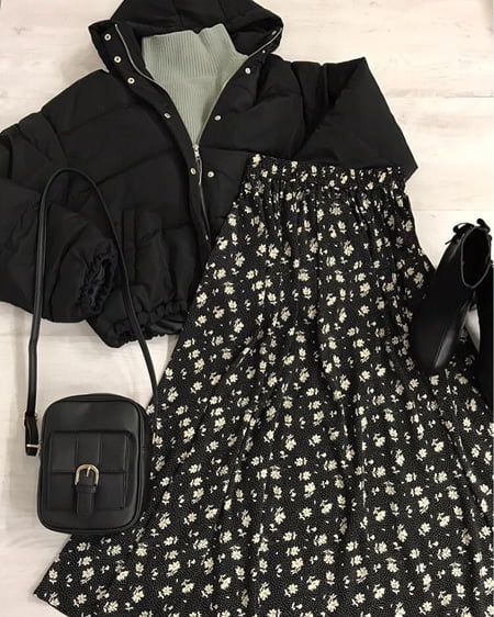 ドットフラワー柄ギャザースカート