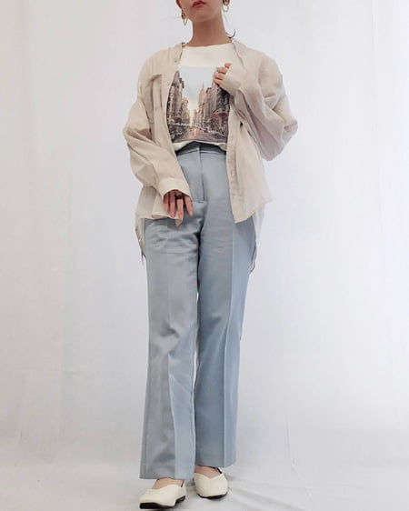 シアーバンドカラービッグシルエットシャツ/デザインブラウス