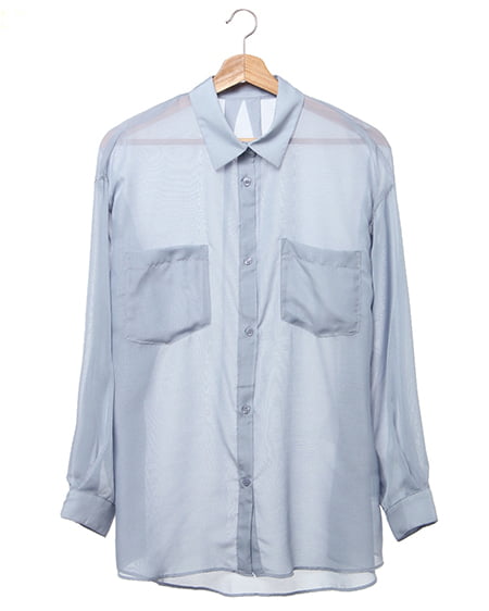 シアービッグシルエットシャツ/デザインブラウス