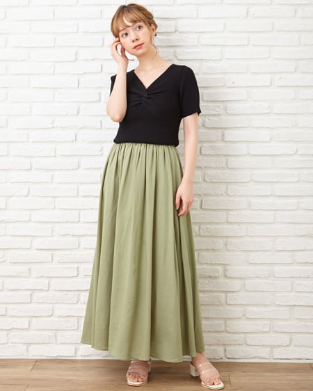麻ギャザー/スカート