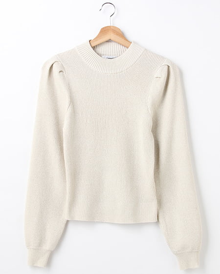 モックネック/パフスリーブラメニット