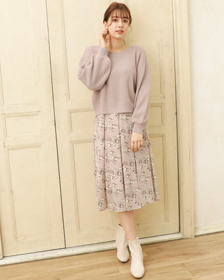 花柄シフォンミモレ丈スカート