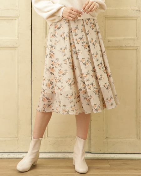花柄シフォンミモレ丈スカート