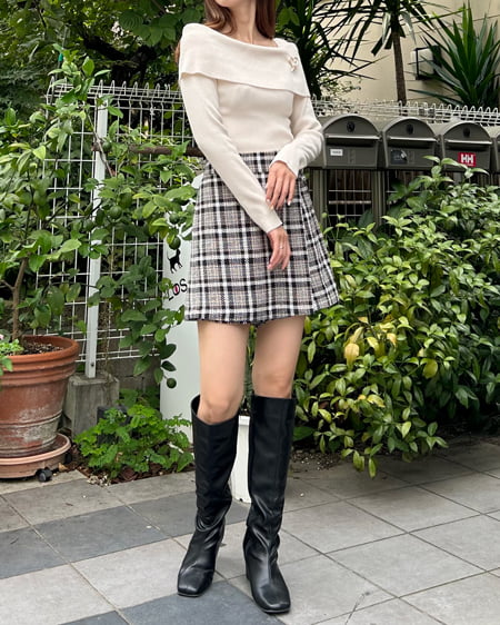 ・タイトなスカートやミニボトムは全身を女性らしいシルエットにまとめ、上品な印象に。