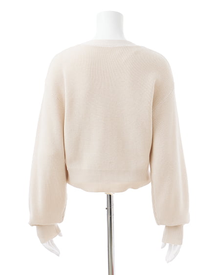 ショート丈Vネックいろいろ装飾ボタン畦ニットカーディガン
