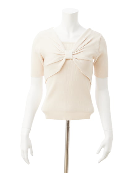 【フロントの大きなリボンデザインが印象的なニットトップス】