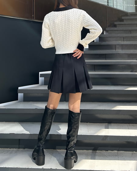 襟元と袖口の配色切り替えがスタイリッシュなニットトップス。