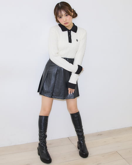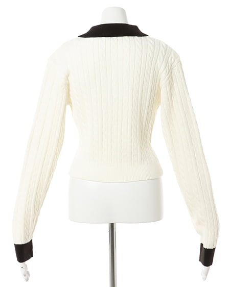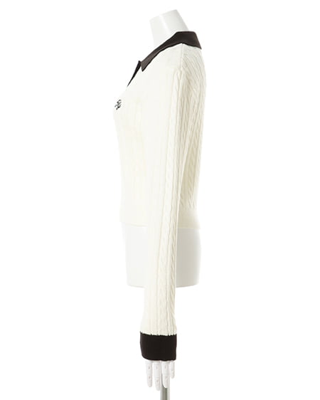 ケーブル胸刺しゅう配色ポロニット