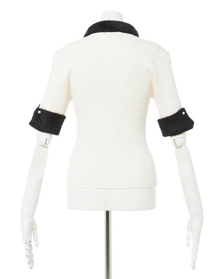 チョーカー付フェザー配色半袖ニット