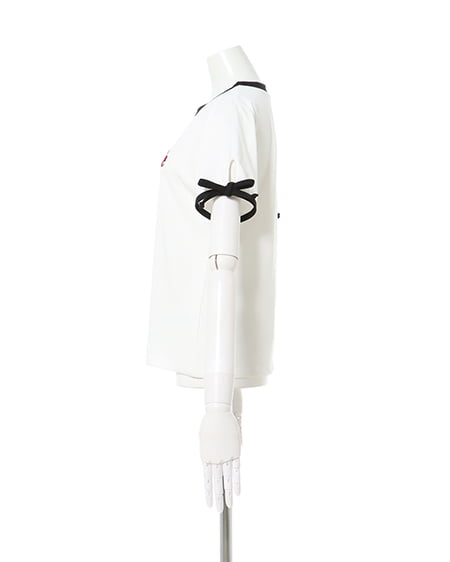 【ロゴ刺繍が可愛い袖リボン半袖Tシャツ】
