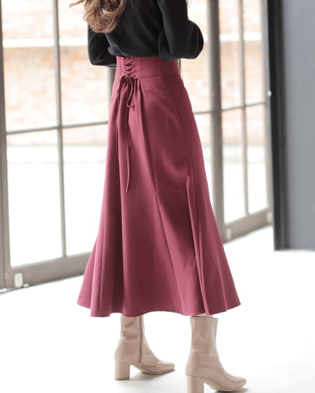 ・後ろがレースUPになっていることでウエストの調整も可能。