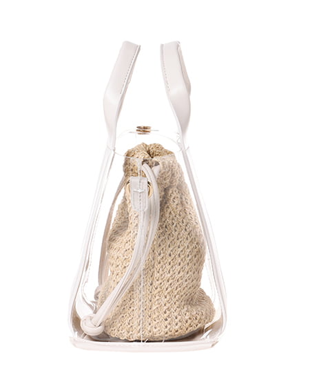 ナチュラルな素材の巾着とクリアなトートバックを組み合わせた季節感のあるアイテムが登場。