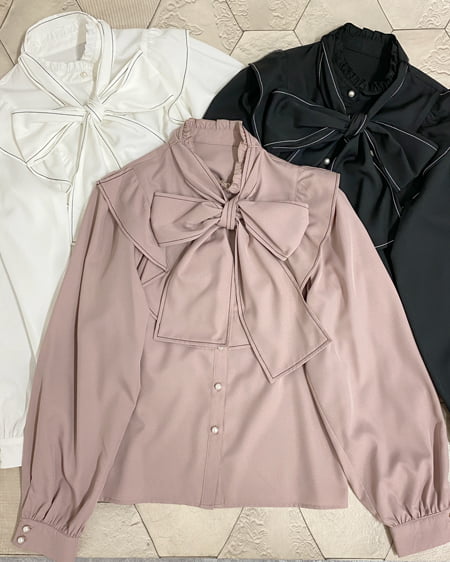 大きなリボンが顔周りに華やかさをプラスする大人レディな2wayブラウス。