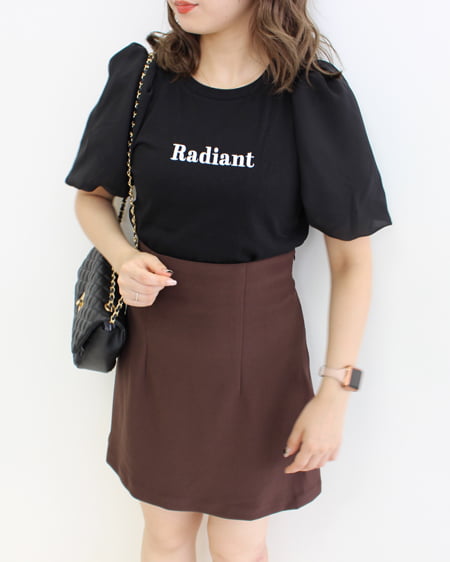 縦長ラインを強調するタックデザインと、ハイウエストのミニ丈で脚長効果も狙えます。