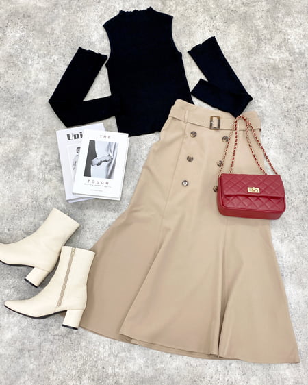 ボディラインに程よく沿うリブ生地でフィット感よく、もっちりとした薄手のニットで着心地も快適です。
