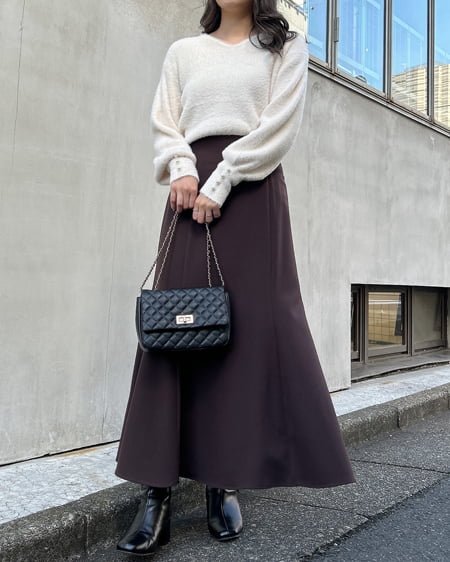 ・キルティングスカート【1224-300462 キルティングフレアスカート】を合わせてワンランク上の大人トレンドコーデに。