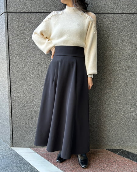 ・シンプルなワンカラーなので柄物スカート【1224-300384 装飾ボタンツイードタックフレアスカート】【1224-300547 BackレースUP花柄マーメイド/スカート】とも相性抜群。